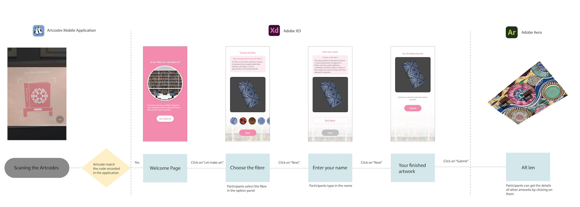 To simulate the museum environment, the university's library was chosen due to its various similarities with an art gallery environment. It was discovered that the prototype lacked precise instructions, leading to confusion among participants engaging with the experience. For example, participants struggled with scanning the Artcode and understanding the rationale behind selecting the fiber for the book and typing their name in the game. To address these issues, instructions for the mini-game and Artcode should be more specific, unfolding the sequence of the experience. Additionally, providing explanations about the meaning and creative process of the artwork before the mini-game could help visitors understand the rationale behind the tasks in the game.
